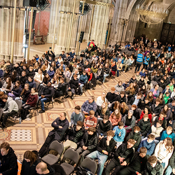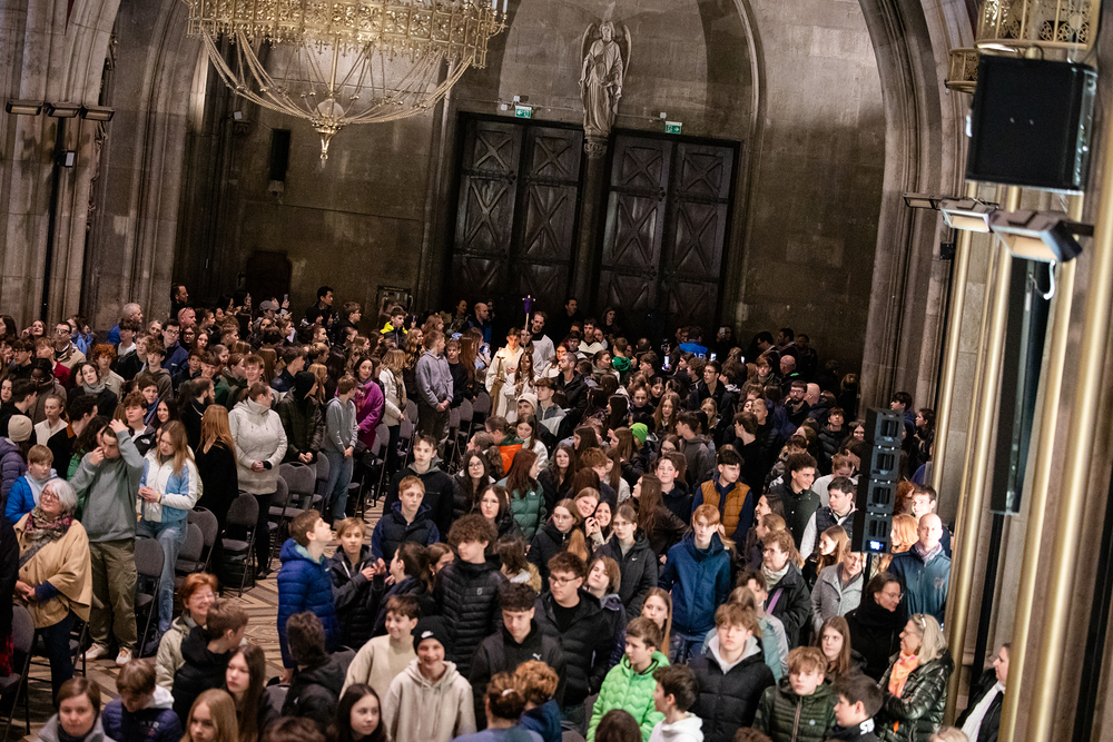 Beim Feuerfest am 21. März 2026 trafen sich über 800 Firmlinge bei der Votivkirche zu Workshops, gemeinsamen Aktivitäten und einer Messe, der unser Erzbischof Josef Grünwidl vorstand.